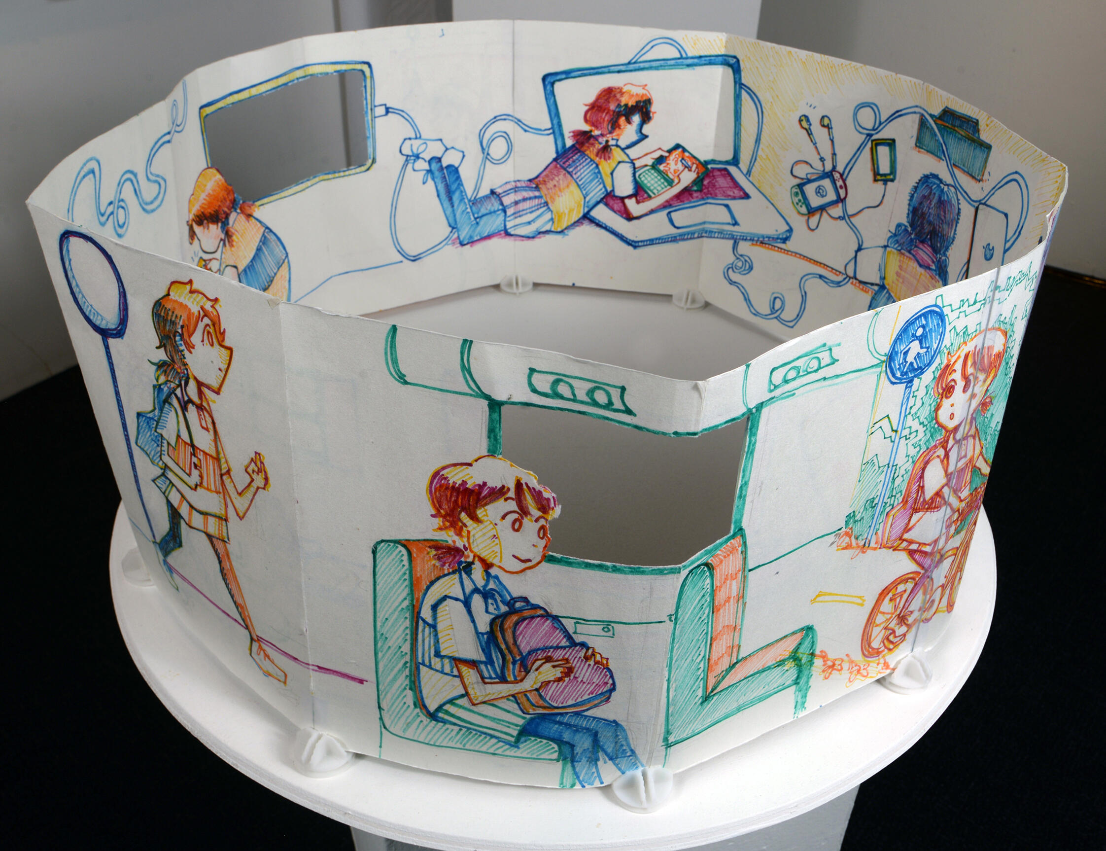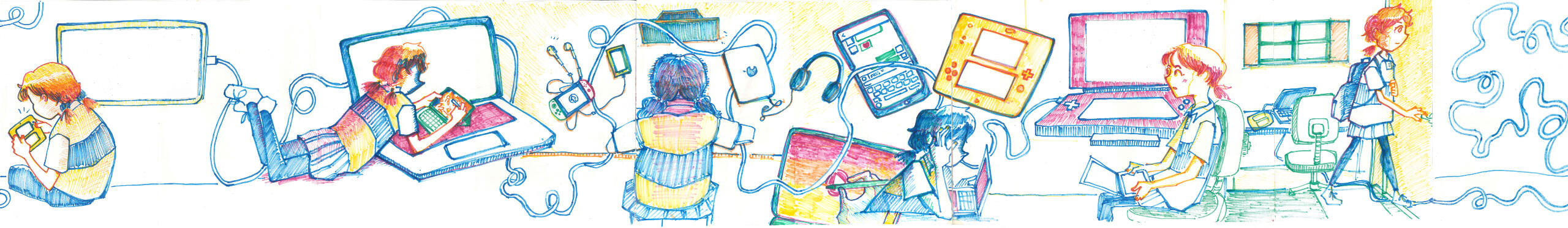 Simulating a cluttered desktop, I depict anxiety through movement— overlapping computer tabs, video game dialogue, flashcards and even animated charts— to express the overwhelming stress of a high-achieving student...how I and most people my age view the world to cope with stress.模擬雜亂無章的電腦桌面,我通過動態(重疊的電腦標籤,遊戲對話,抽認卡甚至動畫圖表)來描述焦慮,表達自己作為高成就的學生的巨大壓力和內圈......這也許是我和大多數同齡人對緩解壓力的理解。